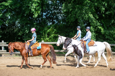 Ob beim Schmusen mit den Fohlen auf der Weide, beim Reitunterricht auf dem Platz oder den Ausritten durch die Uckermark - bei uns lernen die kleinen Reiter den richtigen, liebevollen Umgang mit Pferden - von der Haltung, der Fütterung, der Bodenarbeit bis zum Reiten.
